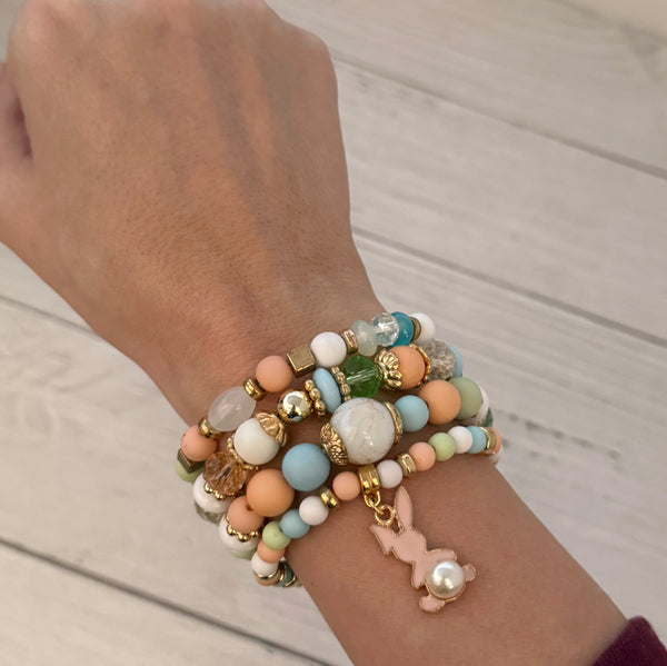 Blush Bunny Beaded Bracelet Set